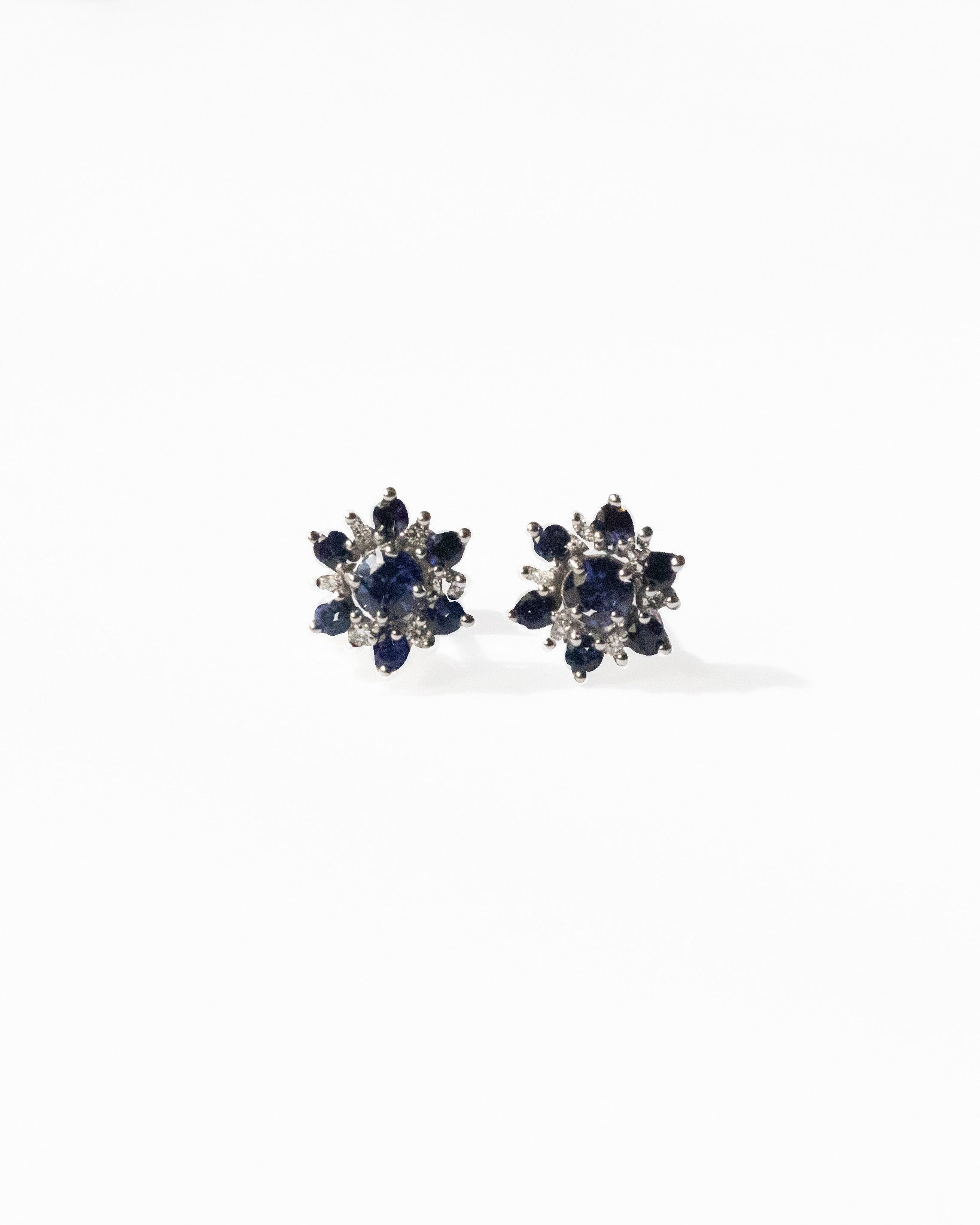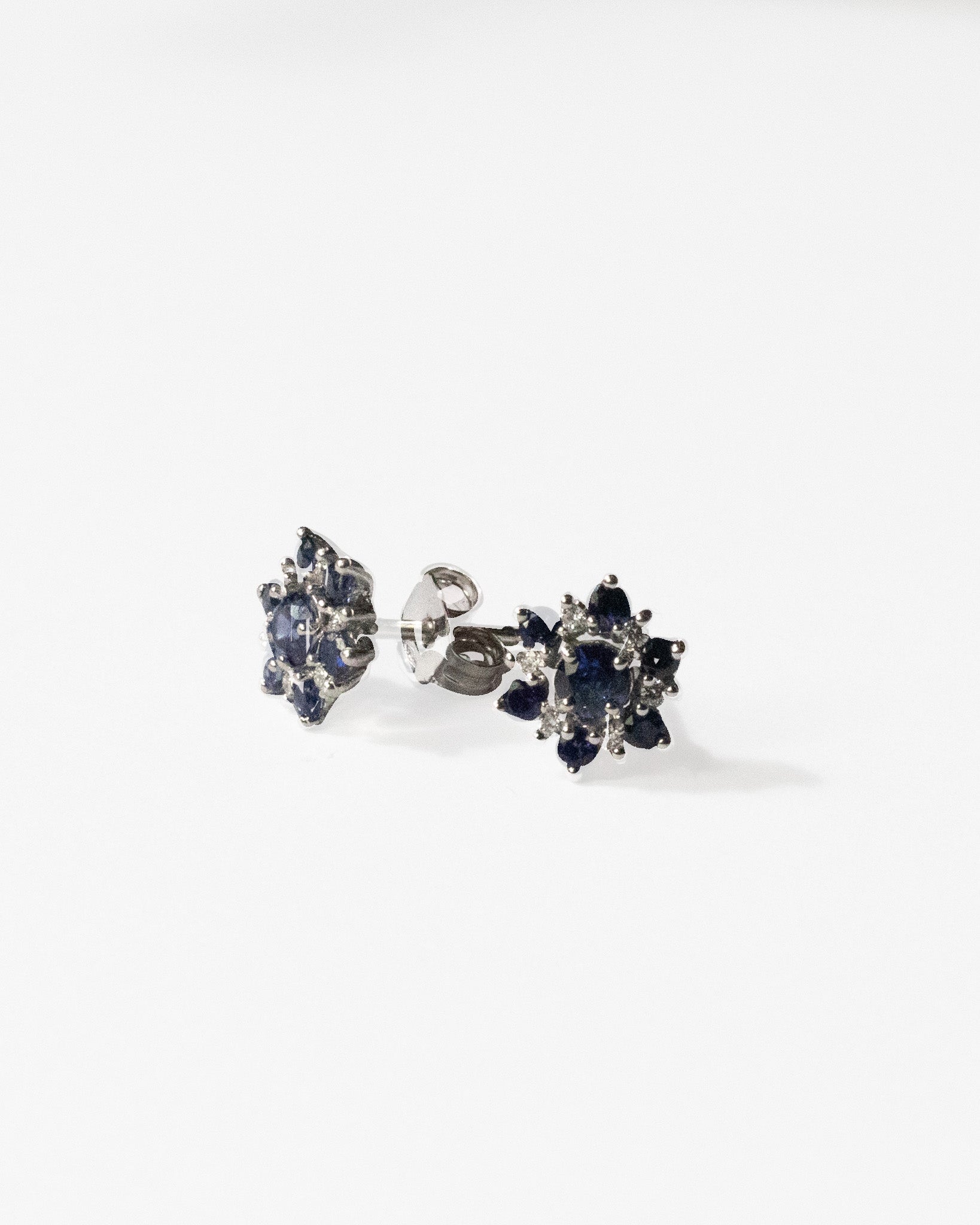 18ct. white gold, sapphire and diamond cluster stud earrings